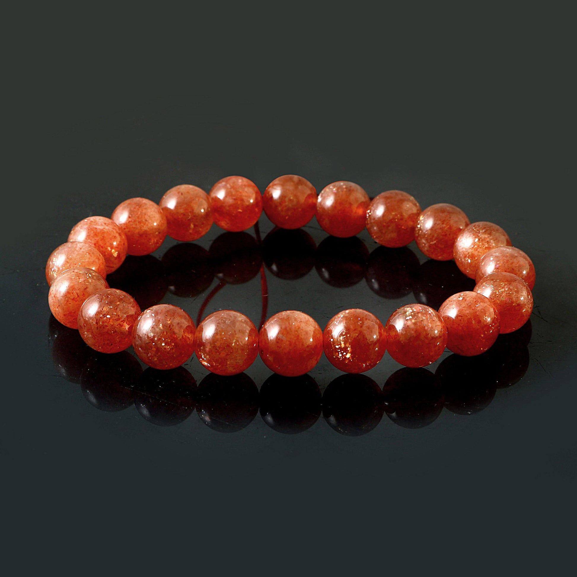 Sunstone Beaded Bracelet - Natural Stone Stretch Bracelet- Crystal Yoga Bracelet