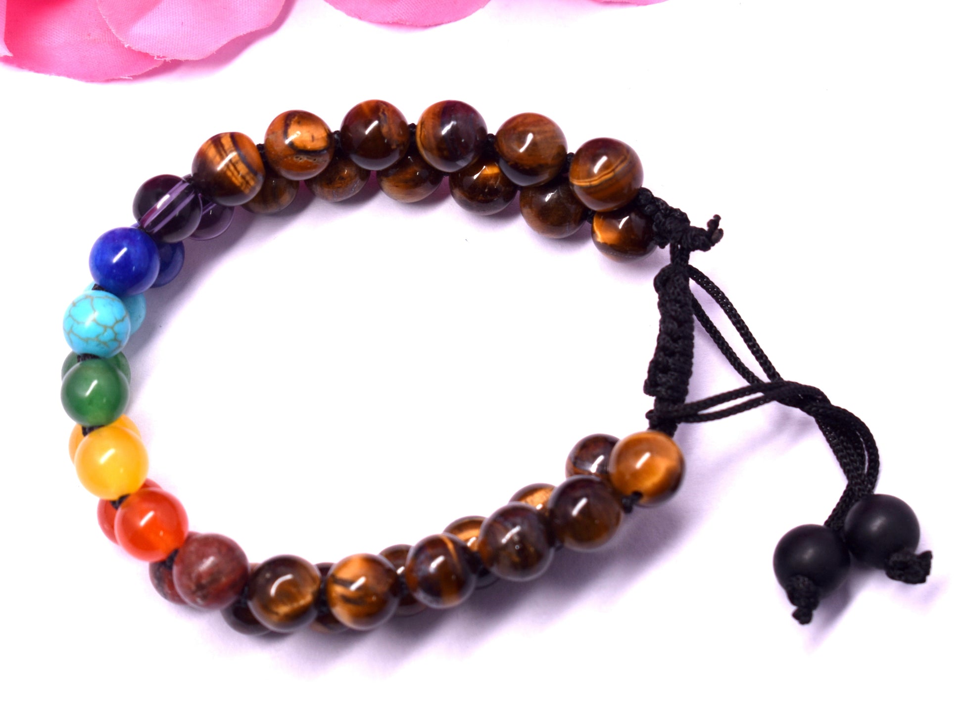 Tiger Eye With 7 Chakra Double Beaded Wire Bracelet